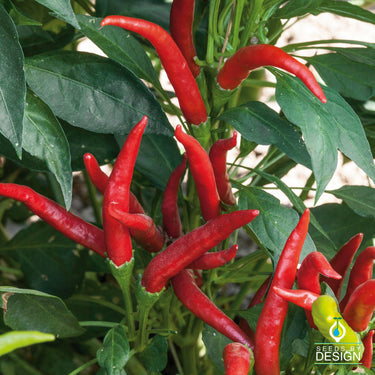 Thai hot peppers are one of the most diverse, easily recognizable varieties. Nearly 80 different types of Thai pepper, the hot Thai is about 10x hotter than a jalapeno, yet far milder than the infamous habanero or Carolina reaper. Turns orange, purple, and red when ready to harvest.