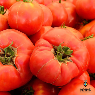 Pink Beefsteak tomatoes are an Amish heirloom variety that are ideal for slicing and fresh eating. The hefty size (bears up to 2lbs) and flavor also make Pink Beefsteak tomatoes a good choice for canning and cooking sauces or soups.