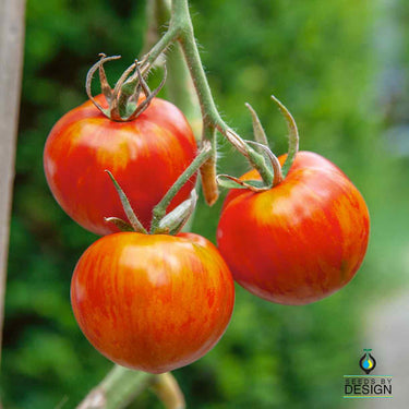 Huge crops of red fruits with orange stripes 1.5-2 in. immature fruits are light green with dark-green stripes tangy tomato flavor.
