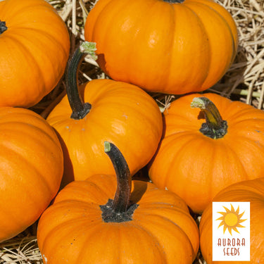 A cutsie hybrid for the small ornamental market but also has excellent edible qualities. Bumpkin F1 has a semi bush plant habit with excellent yield potential. Fruit are 2 x 3 in. and weight about 1/4 lb with dark orange color and strong dark green handles. A big hit for the novelty markets.