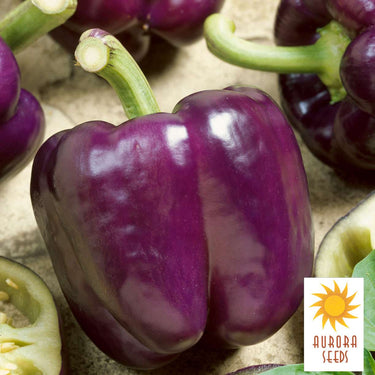 Compact plants with thick protective foliage thick-walled meaty 3-4 lobbed fruits tender-crisp texture mild sweet flavor developed from Hybrid Purple Belle.