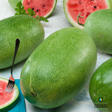 Sweet Princess has a thin yellow-green rind with green stripes. Its flesh is crisp and a deep pink color. These 20 to 30 lbs. fruits are sweet and good shippers.